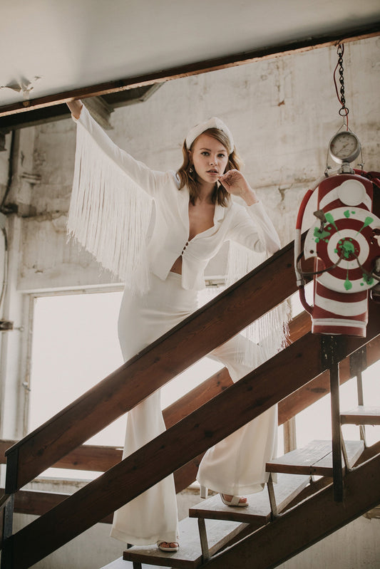 En nuestra colección de vestidos de novia civil, también encontrarás opciones con pantalón y traje de novia, ideales para las novias que buscan un look más atrevido y original. Con nuestros diseños, podrás sentirte cómoda, segura y elegante en uno de los días más importantes de tu vida.